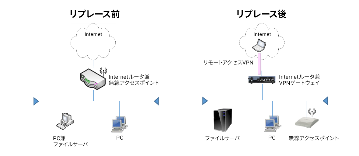 社外のPCからVPNゲートウェイとなるルータへVPN接続する事で社外にいながら社内のサーバへアクセスする事ができる様になった。